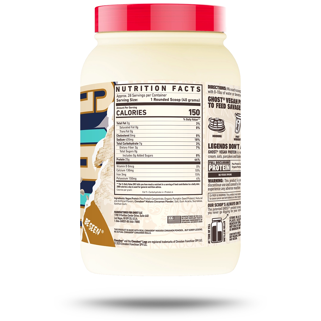 GHOST® VEGAN V2 Protein combines a fully disclosed vegan protein blend (soy & gluten free!) with our legendary flavor(s) to deliver one ridiculously EPIC, plant-based protein product. Easy to drink, easy to digest…easy to hit your goals with 25G+ of protein per serving. Enjoy, legends.